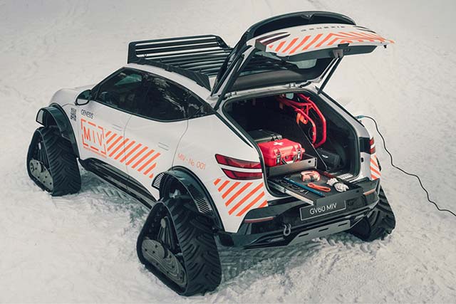 一切配件都是依据其质量和耐用性精心选择的。GV60 MIV 概念车装备雪地履带、运动座椅、医疗用品以及紧迫通讯和警报体系等功用,可在极点条件下支撑山地救援举动。